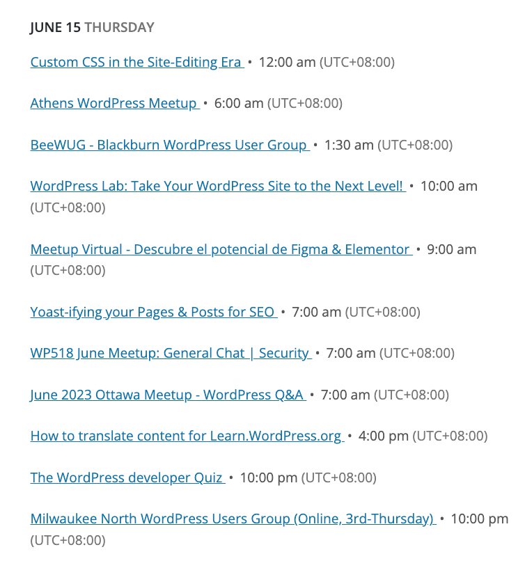 We currently have an issue with the way we sort the list of online events. The events are originally sorted by their local times stored in the database, which leads to incorrect order when viewed globally. For instance, an event happening at 4 PM in New York (20:00 UTC) should be listed after an event at 5 PM in London (17:00 UTC), but the current sorting places the London event after the New York one due to the original local time sort.